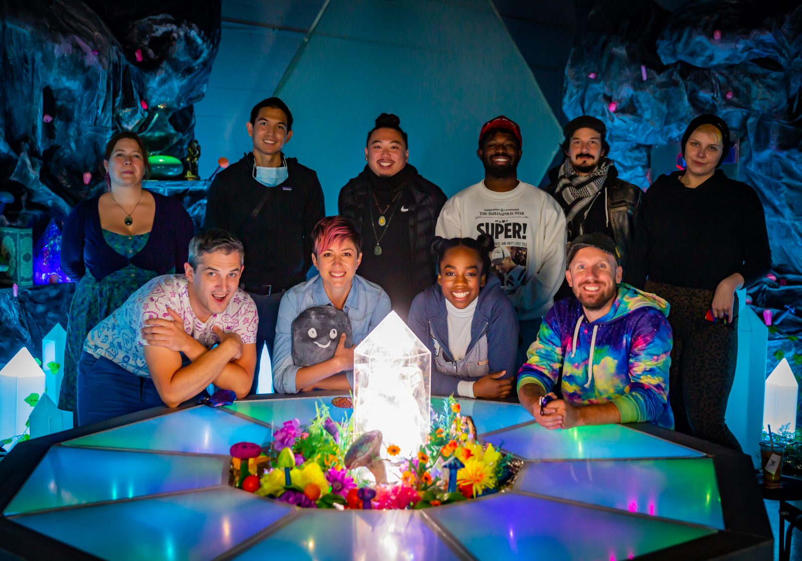 Designed as a co-operative experience for 9-18 people, guests board a shuttle to a mysterious set of ruins on the other side of the glaxaxy. Once there they will uncover a strange machine, learn the story of three unusual alien creatures that called this place home before them, and they will be asked to work together to solve puzzles to unlock pieces of these aliens’ story.